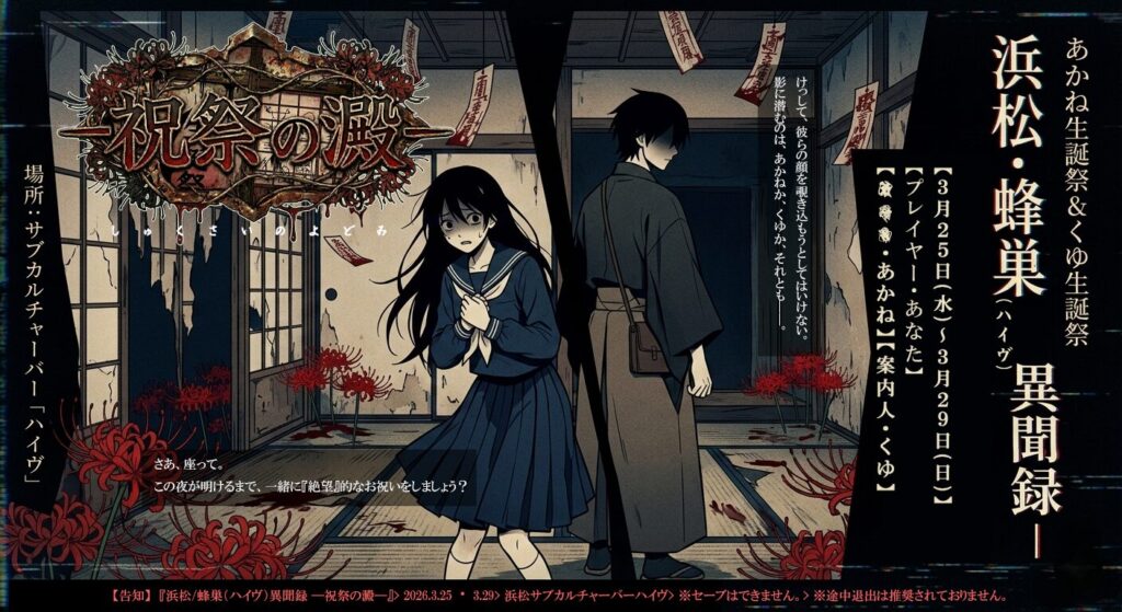 2026.3.25 – 3.29【生誕祭】『浜松/蜂巣(ハイヴ)異聞録 ―祝祭の澱―』