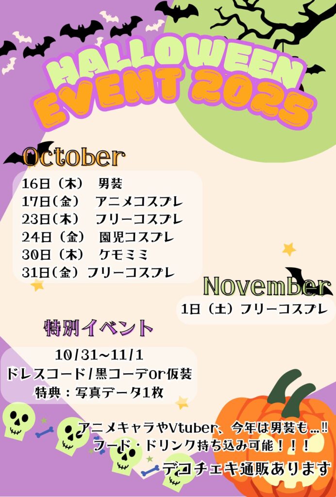 またハロウィンEV期間中は、フードドリンクの持ち込み可能です♪ハロウィンを一緒に楽しみましょう!